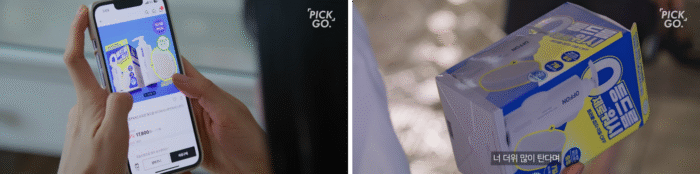 이번 콘텐츠에서는 체험, 탐색, 재구매로 이어지는 구매 여정이 꽤 현실적으로 담겨있어요. 제품이 거의 다 떨어지자 올리브영 앱에서 할인 여부를 확인하고, 이후 오프라인 매장에서 증정 기획 상품이 붙은 제품을 구매하는 모습을 볼 수 있는데요. 이러한 흐름은 스토리에 몰입하며 등장인물에 자신을 투영하는 소비자의 공감대를 효과적으로 자극할 수 있는 방법입니다.