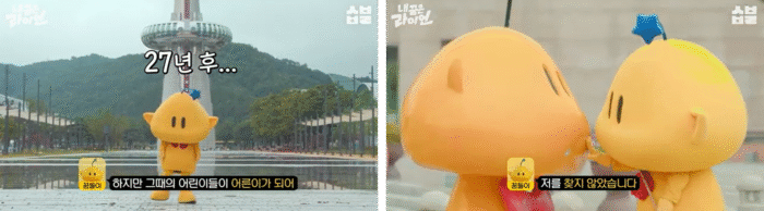 꿈돌이는 1993년 대전 엑스포 및 대전관광공사의 마스코트로, 대전 엑스포의 초대를 받고 온 우주요정 콘셉트의 캐릭터입니다. 오랜 시간이 지나며 잊혀져 가던 꿈돌이는 2020년 <내 꿈은 라이언>이라는 서바이벌 프로그램에 출연했는데요. 이때 엑스포 당시의 추억을 가진 시청자들의 향수를 자극한 것은 물론, 한자리를 지키며 친구들을 기다렸다는 꿈돌이의 서사가 새로운 세대에게도 감동을 주었어요. 덕분에 꿈돌이는 최종 우승까지 거머쥐게 되었죠. 이 계기로 꿈돌이는 제2의 전성기를 맞았고, 지금은 대전광역시를 대표하는 도시 마스코트로 다시 활약 중이에요.
