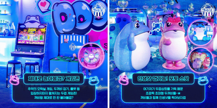 진로의 상징인 두꺼비를 재해석한 ‘두꺼비’는 출시 초기부터 광고와 SNS 콘텐츠에 등장하며 존재감을 키웠고, 이후 전국 주요 도시에 캐릭터 팝업스토어 ‘두껍상회’를 열어 오프라인 접점까지 확장했어요. 광고로 이미 익숙해진 캐릭터 덕분에 팝업스토어는 오픈과 동시에 큰 인기를 끌었고 두껍 굿즈와 포토부스, 쏘맥 자격증 체험 등 다양한 콘텐츠를 운영하며 팬들의 발길을 이끌었죠. 2020년부터 총 10회에 걸쳐 진행된 팝업은 누적 방문객 18만 명을 넘어서며 “술 좋아한다면 꼭 가봐야 할 팝업”이라는 입소문까지 만들어냈습니다.