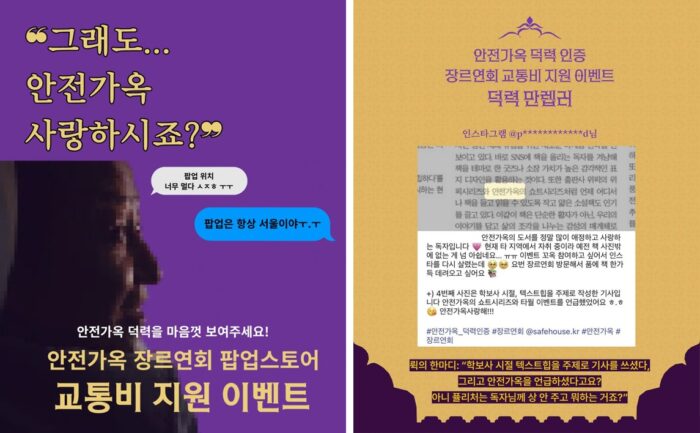 특히 서울에서만 팝업스토어가 열리는 아쉬움을 고려해, 덕력을 인증하면 교통비를 지원하는 이벤트를 진행했어요. 작은 배려 하나로 화제를 모은 건 물론, 독자들의 안전가옥에 대한 애정까지 확인하면서 브랜드와 소비자 사이의 연결을 한층 돈독하게 만들었습니다.