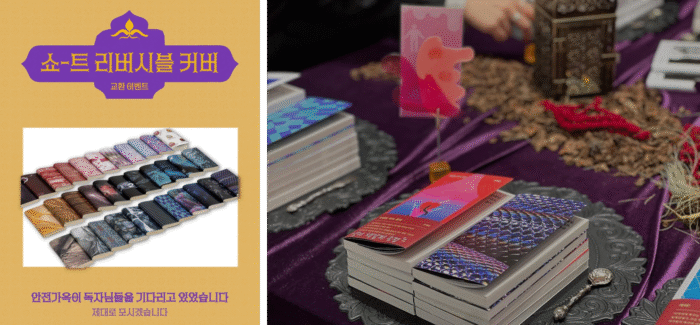 여기에 더해 인기 독서템인 북커버를 활용하여 안전가옥은 쇼트 시리즈를 소장한 사람을 대상으로 33종 전종 리버시블 커버 교환 이벤트를 펼쳤어요. 기존에 쇼트 시리즈 책을 가지고 있던 사람이라면 반가운 소식이었죠. 일부 독자들은 이 리버시블 커버를 얻기 위해 새 책을 구매하기도 했고, 책장 한 켠에 안전가옥 존을 만들어 전시하기도 할만큼 좋은 반응을 이끌어냈답니다. 쇼트 리버시블 커버 무료 교환 이벤트는 기존 소비자에게 신선한 경험을 제공하면서 자연스럽게 추가 소비까지 유도한 사례예요.