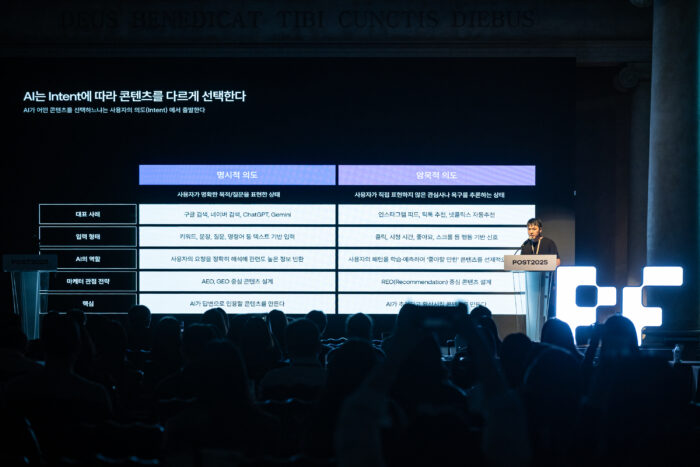 이정빈 구글 코리아 Commerce Industry 부문 헤드는 AI 모델을 기반으로 한 새로운 쇼핑 경험과 광고를 통해 그 방법을 제시했습니다. 한편, 더에스엠씨 신한철 시니어매니저와 박천홍 디렉터는 숏폼 중심의 소비 환경 속에서 브랜드가 생존하기 위한 실전형 바이럴 전략을 공개하며 경험에서 나오는 노하우를 더했습니다. 이어서 김진구 더에스엠씨 CTO는 AI가 콘텐츠를 선택하는 AEO(Answer Engine Optimization) 전략을 소개하며 AI 시대 마케팅의 새로운 길을 제시했습니다.