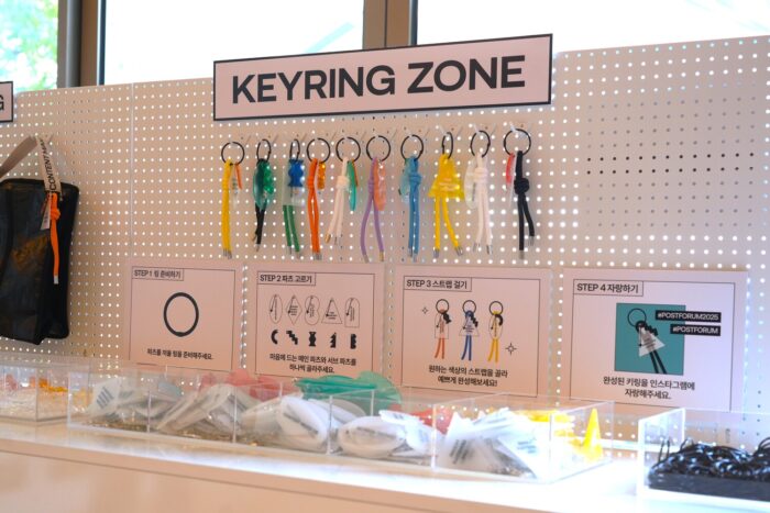 그리고 사이니지 옆쪽에는 키링 고리부터 장식까지 직접 골라 나만의 커스텀 키링을 만들 수 있는 키링존도 마련되었습니다. 이처럼 연결된 경험은 각자의 개성을 표현하고, 포럼 그 자체에 하나의 콘텐츠로써 몰입할 수 있도록 했죠.