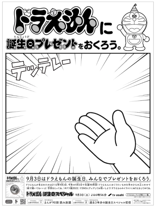 만약 저에게 “도라에몽 생일 축하 아이디어를 짜 봐.”라는 지령이 떨어진다면, 일단 온갖 밈과 챌린지 아이디어부터 떠올릴 것 같아요. 일본 현지 담당자는 다른 선택을 합니다. 신문 광고를 집행했어요!