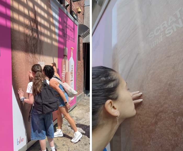 유니레버 터키의 OOH 마케팅은 언론사들의 취재를 확보했다면, 이번에는 고객들의 사진 촬영을 확보한 사례입니다. 미국의 여성 바디케어 브랜드 빌리는 긁으면 냄새나는 포스터를 만들었어요. 그것도 겨드랑이 냄새나는 포스터요…🤧 (안심하세요. 순수한 겨드랑이 냄새가 아니라 빌리의 신제품 향이 난대요.)