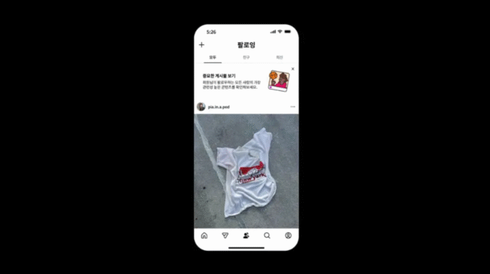 기존 ‘타임라인 피드’는 이제 ‘팔로잉’ 탭이라는 별도 공간으로 이동했습니다. 여기에는 ‘모두’, ‘친구’, ‘최근’ 세 가지 하위 탭이 생겼는데, 팔로우 관계에 따라 콘텐츠를 세분화해서 볼 수 있도록 구성됐어요. ‘모두’ 탭에서는 팔로우하는 모든 계정, ‘친구’ 탭에서는 서로 맞팔로우한 계정의 게시물이 노출돼 한층 더 친밀한 경험을 제공하게 됩니다.