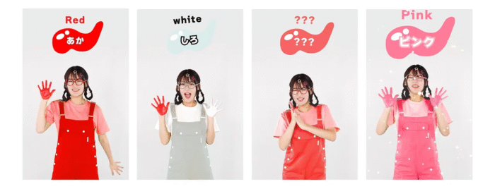 이 챌린지는 일본 키즈 콘텐츠의 색깔 섞기 교육용 영상에서 시작되었어요. 색이 칠해진 손바닥 두 개를 비벼서 나온 색을 보여주는 형식으로 진행되죠. 예를 들어 빨간색과 하얀색을 섞으면 분홍색이 되는 것처럼요. 분홍색 외에도 주황색, 초록색, 보라색 등 다양한 버전이 있어 콘텐츠가 빠르게 생산되고 있는데요. 짧고 반복적인 가사와 중독적인 멜로디가 한 번 들어도 머릿속에 남는 것이 특징이에요. 게다가 동작도 간단하고 가사에 나오는 색과 관련되어 있다면 무엇이든 활용할 수 있어 콘텐츠를 제작하기에도 쉽습니다.
