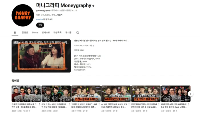알고리즘을 타다 보면 한 번쯤은 이런 썸네일을 마주친 적 있으시죠? 머니그라피는 토스라는 브랜드를 내세우지 않고 돈을 ‘숫자’가 아니라 ‘사람의 삶’으로 풀어냅니다. 재테크 팁을 나열하기보다 돈 앞에서 흔들리는 감정, 선택의 순간, 불안과 욕망을 이야기하며 금융을 누구나 공감할 수 있는 일상의 언어로 번역하죠.