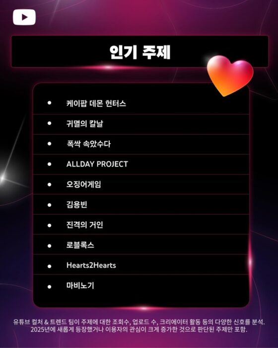 ✔️ K-콘텐츠와 애니메이션이 국내외 인기 주제를 장악
