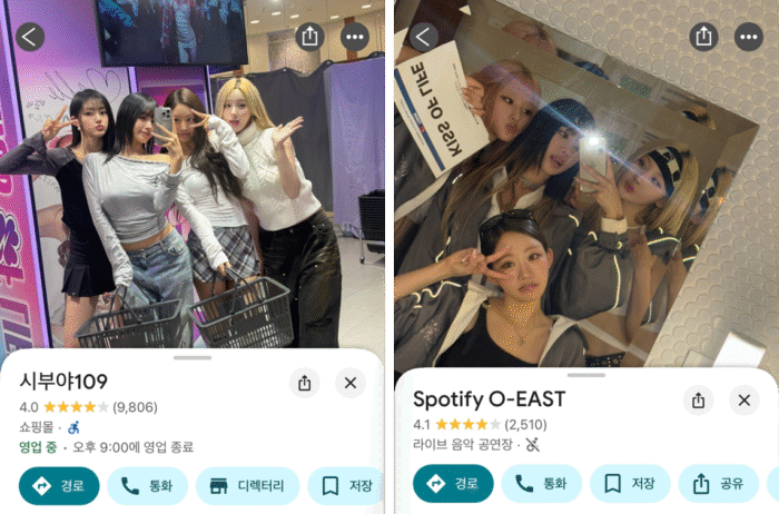 ‘구글맵 여행 인증샷’은 원래는 해외 인플루언서들 사이에서 유행하던 포맷이에요. 구글맵에서 특정 위치를 캡처한 뒤, 장소명과 별점이 적힌 하단 탭을 셀카나 풍경 사진에 합성하는 인증 방식이었죠. 일반적인 장소 인증보다 더 시각적으로 정보가 풍부하고, 감성적으로도 트렌디한 느낌을 줘서 이른바 젠지 여행샷으로 인기를 끌었는데요. 이후 국내에서도 아티스트 키스오브라이프와 우즈 등이 사용하면서 빠르게 확산됐습니다.