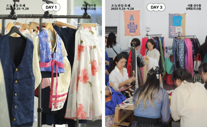 문화체육관광부는 추석을 맞아 ‘추석에는 한복을 입어요’ 캠페인을 진행했어요. 그중에서도 눈에 띄었던 건 전통문화 축제인 ‘오늘전통축제’에서 진행된 ‘21% 한복잔치’였습니다. 입지 않는 한복이나 평상복을 가져오면 다른 한복으로 교환해 주는 이벤트였는데요. 어릴 적 입던 한복을 보관만 하고 있거나 새로운 한복을 사기에는 부담을 느끼는 경우가 많은 사람들에게 꽤 합리적인 선택지였죠. 단순히 한복을 입자는 권유가 아니라, 지금의 생활 방식에 맞는 순환 구조를 제안했다는 점에서 좋은 반응을 얻었답니다.