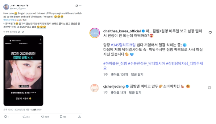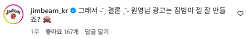 출처 (1) X @scent_of_grass (2) 인스타그램 @jimbeam_kr 댓글 반응