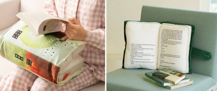온라인 서점 알라딘의 정기 증정품 중 하나인 ‘책 모양 베개’도 실물형 굿즈 트렌드와 맞물려 다시 조명 받았어요. 실제 책의 표지를 그대로 구현했을 뿐 아니라, 베개 내부에는 본문 일부가 인쇄돼 있는 디테일까지 갖춘 점이 특징인데요. 올해 10월에는 성해나의 <혼모노>, 김애란의 <안녕이라 그랬어>, 제인 오스틴의 <오만과 편견> 등 인기 도서를 활용한 베개가 등장했습니다. 실감 나는 비주얼에 감성까지 더해져 “내 최애 책도 베개로 나오면 좋겠다”, “독서할 때 이보다 좋은 쿠션이 없다”는 반응이 이어졌죠. 독서인의 취향과 라이프스타일을 모두 고려한 브랜드 굿즈로, 실용성과 감성을 동시에 잡은 사례예요.