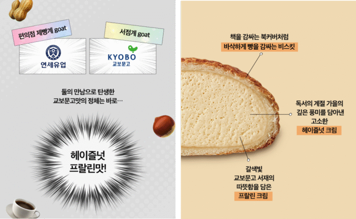 이 사례는 특히 브랜드의 본업과 거리가 있어 보이는 영역에서도 소비자 경험을 창의적으로 확장할 수 있음을 보여줬다는 점에서 인상 깊습니다. 크림이라는 대표 제품 IP를 보유한 연세유업과, 공간의 향을 제품화할 만큼 뚜렷한 정체성을 지닌 교보문고의 만남은 서로의 강점을 교환하며 시너지를 만들었어요. 연세우유는 맛에 새로운 가치를 더했고, 교보문고는 책이라는 기존 콘텐츠를 빵이라는 매개를 통해 더욱 친숙하게 풀어낼 수 있었으니까요.