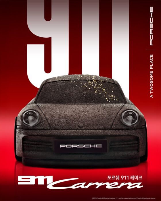 케이크는 전 세계 자동차 마니아들의 드림카이자 포르쉐의 상징적인 모델 ‘911’을 모티브로 제작되었어요. 디자인은 포르쉐와 수차례 협의를 거쳐 만들어져 유선형 실루엣과 휠, 리어 스포일러까지 정교하게 재현해 마치 하나의 미니어처를 보는 듯한 디테일을 자랑했습니다. 두 브랜드가 지향하는 프리미엄 감성과 장인정신을 디저트 안에 담아낸 셈이죠.