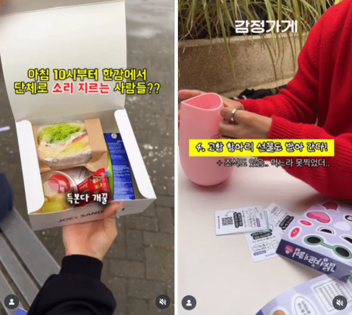 우선 참여자들은 다 함께 소리 지르는 퍼포먼스를 진행한 뒤, ‘고함항아리’와 조식을 함께 제공 받았습니다. 고함항아리는 외부 소음을 차단해 주는 구조로 되어 있어 항아리에 대고 마음껏 소리를 지를 수 있게 만든 도구인데요. 노래 연습이나 놀이용으로 사용되는 이 항아리를 감정 해소 도구로 제시해, 일상에서도 감정 해소를 이어갈 수 있도록 한 점에서 센스가 느껴지더라고요.😆 여기에 스티커 꾸미기 키트까지 함께 증정해, 캠페인의 메시지를 눈에 보이는 물건으로 소유하고 온라인 인증 콘텐츠로도 이어질 수 있도록 설계한 점도 돋보였고요.
