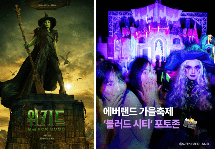 위키드 1은 ‘마녀공장’, ‘스타벅스’, ‘크록스’ 등 다양한 브랜드와의 협업으로 화제가 된 바 있습니다. 콜라보 제품을 통해 영화 속 두 인물의 대표 상징 색인 ‘초록’과 ‘핑크’를 효과적으로 각인시켰죠. 이번에 개봉하는 시즌 2는 ‘에버랜드’와의 협업을 통해, 위키드의 배경 장소인 ‘에메랄드 시티’ 그리고 ‘할로윈 위키드 퍼레이드’를 선보인다고 합니다. 앞으로 이어질 다양한 협업 소식도 기다려지네요.