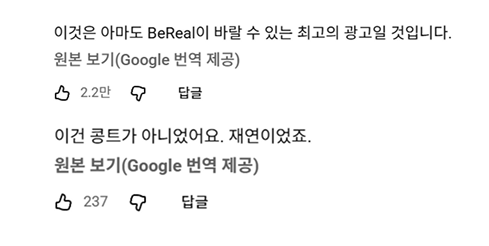 댓글에는 “이게 비리얼이 바라는 광고일 것이다”, “이건 콩트가 아니라 리얼리티다” 등 공감과 재미를 느낀 시청자들의 반응이 잇따랐어요.