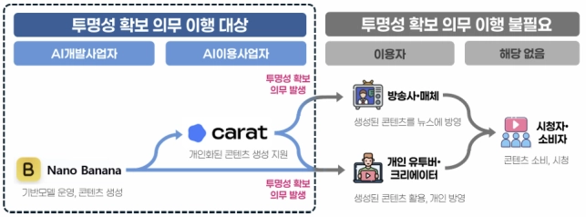 이들은 고객에게 AI 기술 자체를 경험하게 하거나 결과물을 상품으로 제공하기 때문에 소비자가 이를 인지할 수 있도록 투명성을 확보해야 할 법적 의무를 가져요.