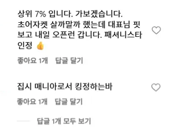 인스타그램 @arin.fish_market 댓글 반응