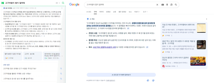 - 다만 두 기능 모두 아직 전체 검색에 적용된 것은 아니다. 구글의 AI Overview는 출시 초기 약 26% 노출에서 2025년 9월 현재 44.4%까지 확대됐으며, 네이버는 AI 브리핑이 약 8%에서 연내 20%까지 확대 예정이라고 공식 발표했다.