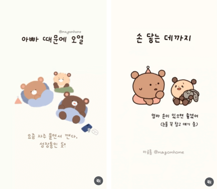 귀여운 곰 캐릭터 일러스트로 그려낸 엄마, 아빠, 딸 ‘솔이’의 잔잔한 일상툰 채널이에요. 아빠가 악당으로 나오는 악몽을 꾸고 펑펑 울거나, 엄마 품에 더 이상 못 안길까 봐 자신이 더 작아지면 좋겠다고 하는 등 솔이의 사랑스러운 면모가 콘텐츠 전반에서 돋보이는데요. 여기에 따뜻한 애니메이션까지 더해지면서 랜선 이모·삼촌들의 마음을 녹이고 있답니다.