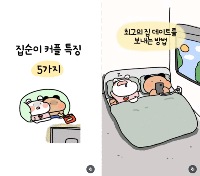 순돌희네는 ‘순희’와 ‘돌희’ 커플의 일상을 담은 릴스툰 채널이에요. 캐릭터 이름은 ‘집순희(집순이)’와 ‘집돌희(집돌이)’에서 따왔을 만큼, 대부분의 콘텐츠가 집 데이트나 집 안에서 보내는 일상을 중심으로 구성되어 있어요. 예를 들어 ‘집순이 커플 특징 5가지’, ‘최고의 집 데이트를 보내는 방법’과 같은 내용을 다루는 식이죠.